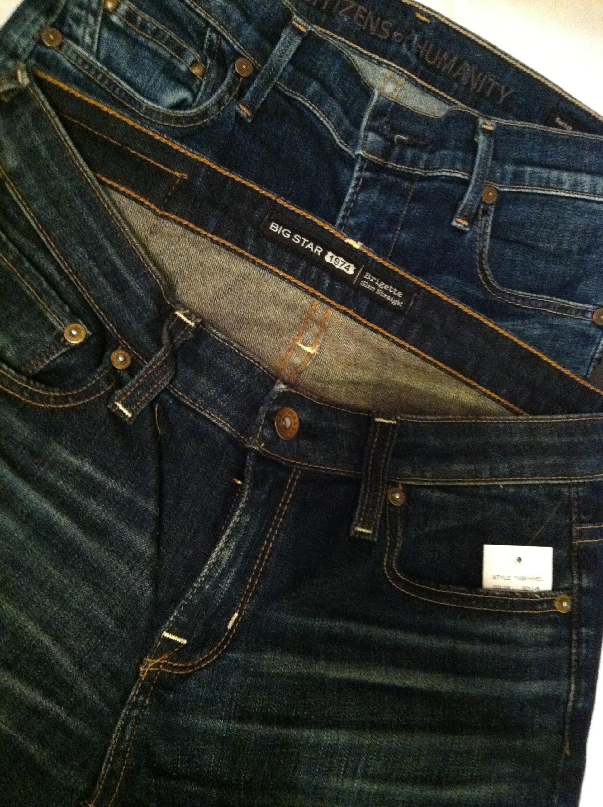 Really, she was very helpful and patient as I tried on every pair of skinny jeans in my size in the store. And really, the jean trying on process, more than any other item of clothing, really does require one to actually try them on. You can’t just walk in and say, “I’ll take a pair of bootcut jeans in a 27.” There were some pairs that I couldn’t get past my knees. Some that I could stick my fist in the waistband. And of course, true to form, there were two pairs that were just right.